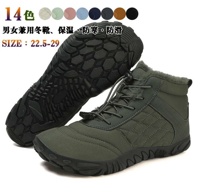 ◆◇◆売れている秘密◆◇◆ サイズ:24.0cm 24.0センチ 24.5cm 24.5センチ 25.0cm 25.0センチ 25.5cm 26.0cm 26.5cm 27.0cm 27.5cm 28.0cm 28.5cm 29.0cm。 カラー:グレー 黒 ブラック カーキ。 ヒールの生地:滑りにくい ソール。 ヒールのタイプ:厚底 フラット ぺたんこ 。裏起毛のハイカットウォーキングシューズで寒い秋冬にぴったり。 【 暖かい防寒靴】内側にはファーをたっぷり使用し、つま先まで覆われて保温性バツグン。インソールもファー仕様になっています。厚底で安定感抜群、歩きやすいのが嬉しいポイントで、雪道対応ソールのウインター機能を兼ね備えたショートブーツ。 【滑り止め・軽量】雪や氷など濡れた道でも滑りにくい、優れたグリップ力が自慢の独自ソールを採用。ソールの形は、凹凸があり溝が深いものだとより安定感があります。冬期のアクティビティを楽しむ際はもちろん、日常生活においても快適な履き心地を実現します。 【おしゃれのウィンターブーツ】軽快に歩きやすく冬の雪道も安心、 実用性だけでなく、ファッションにも取り入れやすい魅力的なシューズです。 雪の日、通学、通勤、旅行、お出かけ、スノーハイキング、スキースポーツ、トレッキングなどのスーツ。 ◆◇◆注意事項◆◇◆ご覧のモニターの環境、撮影環境により実物と色味が異なって見える場合がございます。湿った状態で他のものと擦り合わせると色が移る恐れがあります。濃色品の洗濯時は、白色、淡色と分けて洗ってください。説明 保温性・耐久性・快適性を兼ね備えたスノーブーツ♪ つま先までふわふわのボアが詰められており、暖かさにも優れています。 ぺたんこでしっかりと支えてくれるので、旅行などで長時間歩いても疲れにくい&足が痛くなりにくい、フラットシューズ です。 アウトソールは凸凹形状で悪路面でもしっかりとグリップしてくれる安心の履き心地 年齢を問わずに、寒い季節に親子と一緒に雪遊び、旅行などのアウトドアシーンはもちろんのこと、通勤、通学、ショッピング、デートなど使用することもできます。 実寸なので、約1〜3cmの差があります。 素材や接着剤等の匂いがある場合がございます。気になる場合は、消臭スプレー等の使用や陰干しをおすすめします。 お使いのモニター解像度や閲覧環境により、実際の商品と画像のお色味が異なる場合がございます。