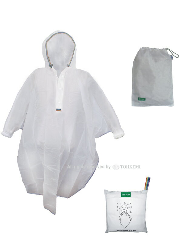 【送料無料】【即日発送】雨降りが楽しみに! トオケミ(TOHKEMI) レインウェア ECO teru-teru-bozu (#037 ホワイト) [Fサイズ] 〈オリジナルポーチ付〉【子供 キッズ レインコート ポンチョ レインスーツ 防水 通勤 通学 レディース かわいい おしゃれ】