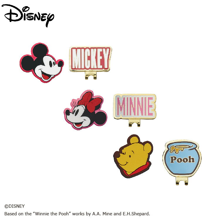 ハットクリップ付きマグネットボールマーカー ・さりげないかわいらしさでSNSやインスタでも注目されること間違いなし!! ・ゴルフがもっと楽しくなりそうな予感!! ミッキーマウス・ミニーマウス サイズ:マーカー:約H3.7×W4cm 台座:約H2.3×W3.8cm くまのプーさん サイズ:マーカー:約H3.5×W3.4cm 台座:約H3.2×W3.3cm 材質:マーカー:塩化ビニル樹脂 台座:鉄 (C)Disney
