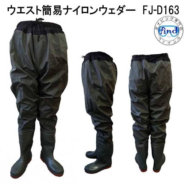 簡易ナイロンウェダー FINEJAPAN FJ-D163 ファインジャパン モスグリーン BR>ウエストハイウェーダー ラジアル底 FJ-D163 釣り フィッシング ウェーダー ウエダー 胴付長靴 胴長 長靴 土木 ラジアルソール 釣り具