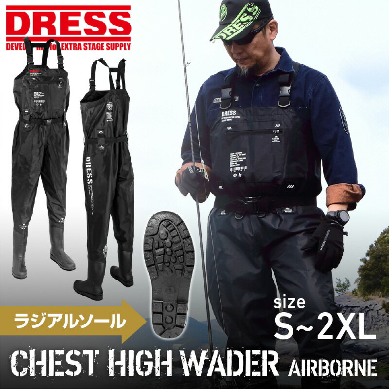 ドレス(DRE) ラジアルソール ウェーダー チェストハイウェーダーAIR スリム&ワイド M~2XL 胴長靴 大きいサイズ 釣り 胴長