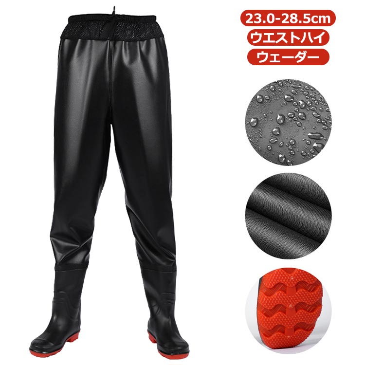 ウェーダー ウェスト丈 胴長靴 作業着 釣り用 ラジアルソール 一体成型 耐酸 耐アルカリ 渓流釣り 田植え 梅雨対策 雨道 アウトドア ヒップブーツ 男女兼用 完全防水 耐磨耗 フィッシングウェーダー