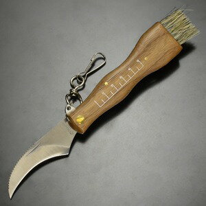 Maserin マッシュルームナイフ 折りたたみ式 ウォールナット材 ブラシ/ピンセット付き MAS800 マセリン きのこナイフ フォールディングナイフ 折り畳みナイフ きのこ狩り スプリングバック 後方板バネ スリップジョイント機構 板ばねロック 折畳ナイフ 折畳みナイフ