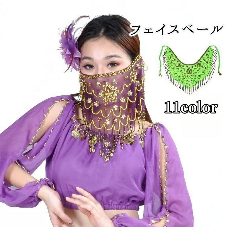 送料無料 フェイスベール アラビアンマスク ベリーダンス 衣装 小物 アクセサリー ビーズ スパンコール キラキラ 華やか おしゃれ 仮装 ハロウィン カラバリ豊富 レッド ブラック ホワイト ピンク ブルー イエロー パープル 赤 黒 白 黄色 青 紫