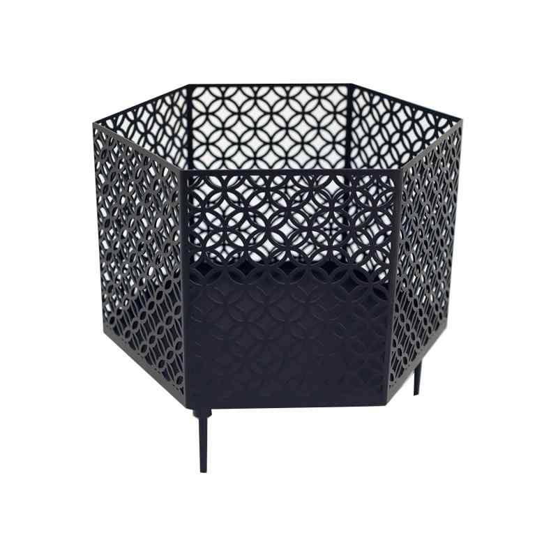 【焚き火台だけじゃない!3WAY】夜の灯りとして、暖を取るためなどにかかせない焚き火。焼き網を使用すれば直火での調理も可能。バーベキューやちょっとした料理にも使えます。中にキャンドルやライトをいれるだけで、あっという間におしゃれなインテリアライトに大変身。 サイズ:【本体】高さ250x長さ400x幅346x厚み2mm【脚】大:長さ150x幅10mm、小:長さ85x幅10mm 重量:約3800~6000g(デザインによって重さが変わります) 材質:鉄 付属品:本体、脚2種(85mm、150mm)各3本ずつ、天板、収納袋