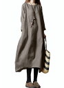 [JINJUDUO]ワンピースレディースロングワンピース夏長袖薄いコットンリネンワンピース着痩せチュニックマキシ丈トップスゆったり無地秋綿体型カバー大きいサイズレディース服