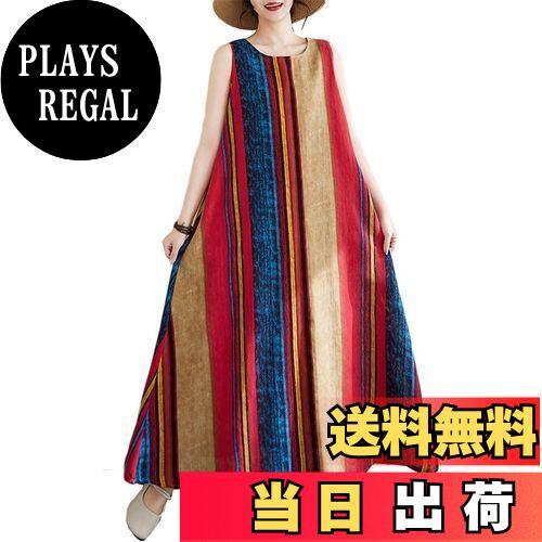 【送料無料】[MaxWant] ロングワンピース ワンピース 花柄 レディース ノースリーブ 大きいサイズ 体型カバー ゆったり 春 夏 色:ストライプ、サイズ:XL