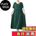 【送料無料】 ワンピース レディース Aライン シンプル 膝丈 ポケット付き 半袖 ミディアム丈 無地 ふんわり 大きいサイズ ゆったり カットソー 着痩せ オフィス 体型カバー ストレッチウエスト 通気性 夏用 通勤 色:グリーン、サイズ:L