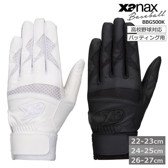 【名入れ刺繍可】【メール便送料無料】【即日発送】ザナックス XANAX バッティング手袋 バッティンググローブ 両手用 白 ホワイト 黒 ブラック 高校生野球対応 野球・ソフトボール バッテ バッティンググローブ BBG500K (2511oy)〇ネーム加工 1M6・2M12
