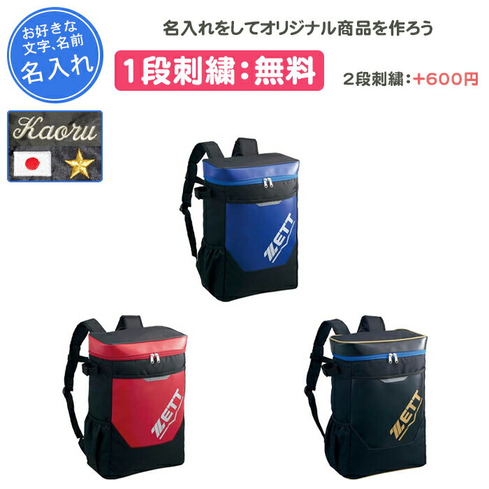 【名入れ1段付き】 野球 リュック バッグ ジュニア 刺繍 バット収納 ゼット 子供 名入れ 名前入れ 文字 小学生 男の子 女の子 子ども こども キッズ 少年 ZETT zett ブラック 黒 ブルー 青 ゴールド 金 少年用デイパック BA1523