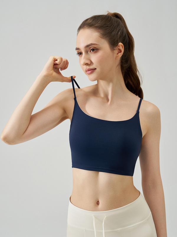 スポーツブラ レディース 高級感 細ストラップ ヨガブラ 短め丈 固定カップ 揺れ防止 フィットネスブラ 美背 インナー 接触冷感 吸湿速乾 スポーツ トレーニング ピラティス ランニング ジム 春夏