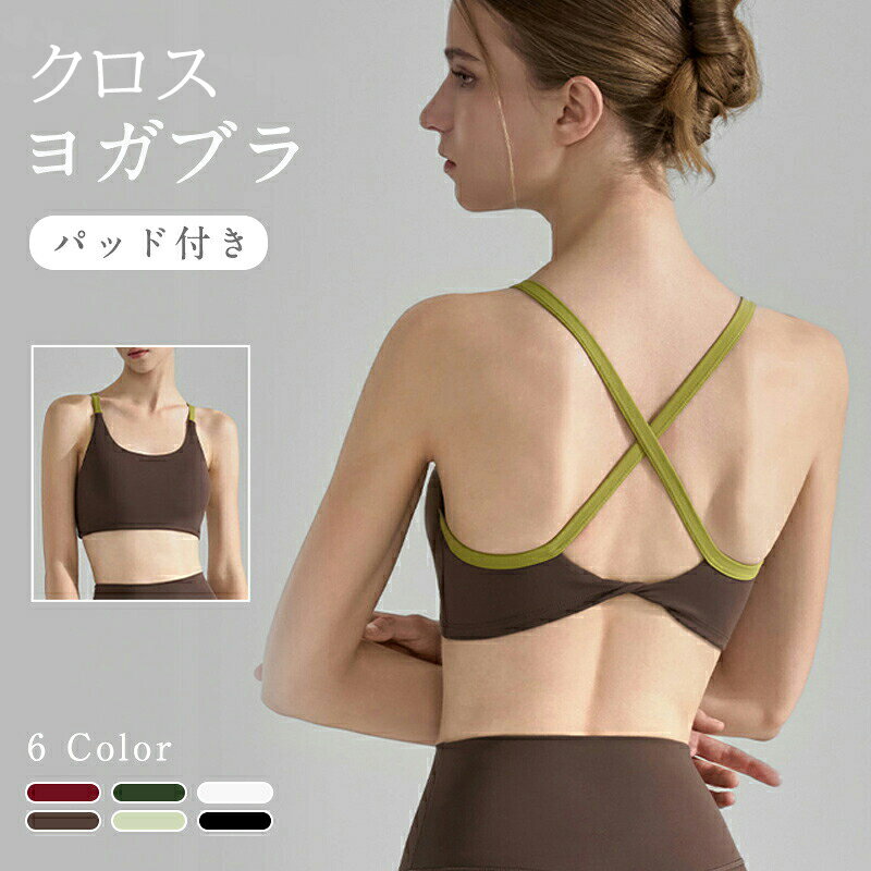 スポーツブラ ヨガブラ パッド付き スポーツインナー ツイスト裾 クロスバックデザイン 配色ストラップ 吸湿速乾 高発色 洗濯しても色落ちなし ランニング ジム ジョギング トレーニング