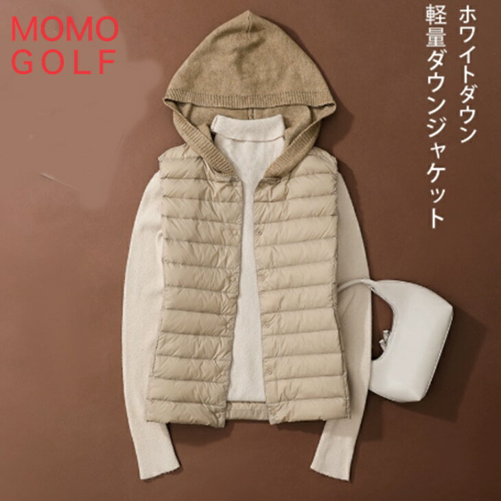 大きいサイズ レディース ゴルフウエア 軽量薄手 ニットフード付き ショート ダウン ベスト ゴルフ ベスト 防寒 被らないゴルフアウター ゴルフジャンパー ゴルフブルゾン カジュアルゴルフジャケット ゴルフ女子 大人カジュアル レディース 韓国 ゴルフ