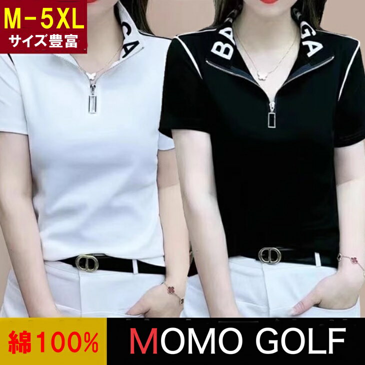 サイズ豊富 大きいサイズ レディース ゴルフウエア スタンドカラー ジッパー 半袖ポロシャツ カジュアルゴルフウエア 動きやすい コットン100% 涼しい素材 ゴルフシャツ 薄手 保温性 オールシーズン 着心地重視 ゴルフ女子 大人ゴルフウエア 韓国 ゴルフ 大人カジュアル