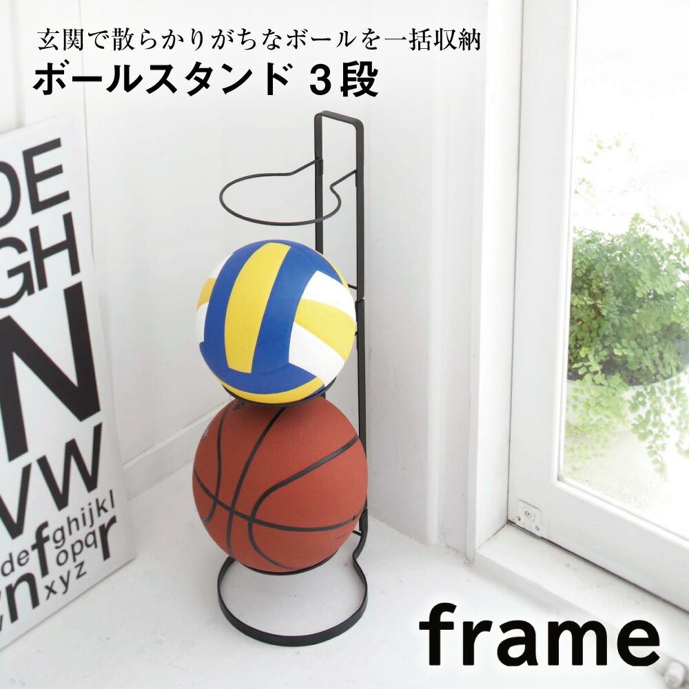 ボールスタンド 3段 ブラック 山崎実業 縦収納 省スペース 幅20.5cm ボール置き 玄関 おしゃれ 便利 シンプル 収納 サッカーボール バスケットボール バレーボール ヘルメット ガレージ 子供 キッズ スポーツ ボールラック フレーム 7290 BOSS