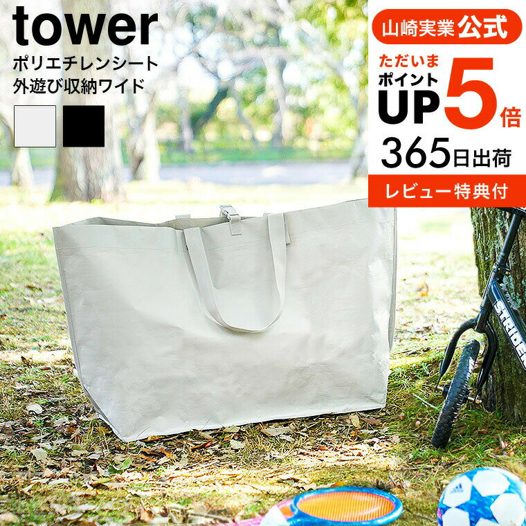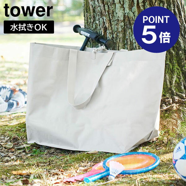 \レビューで1000円クーポン!/ ポリエチレンシート外遊び収納バッグ タワー ワイド 山崎実業 tower ライトグレー ブラック 1846 1847 アウトドア 収納 収納ケース 80L 大容量 水拭き可能 yamazaki タワーシリーズ