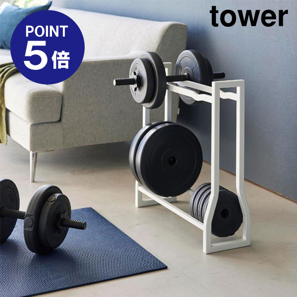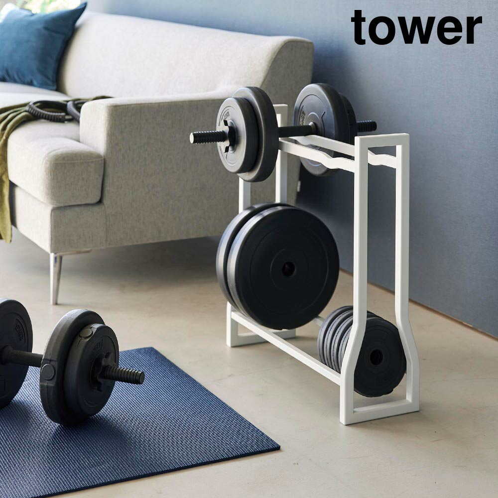 ダンベルラック タワー 山崎実業 ブラック ホワイト tower 耐荷重約90kg 組み立て不要 収納 自宅 フィットネス用品 腹筋ローラー ダンベルプレート トレーニングチューブ ウエイトプレート トレーニング 筋トレ おしゃれ 公式 1963 1964 シンプル コンパクト トレーニング