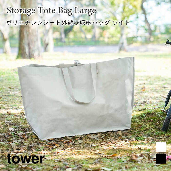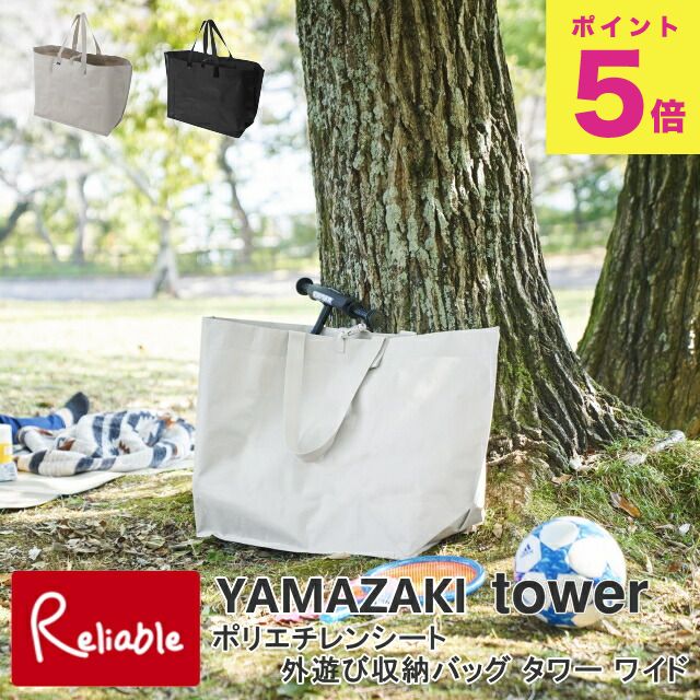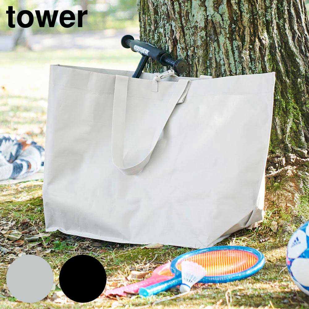 ポリエチレンシート外遊び収納バッグ タワー ワイド ブラック 山崎実業 yamazaki tower おしゃれ オシャレ シンプル 大容量 カバン かばん トートバッグ