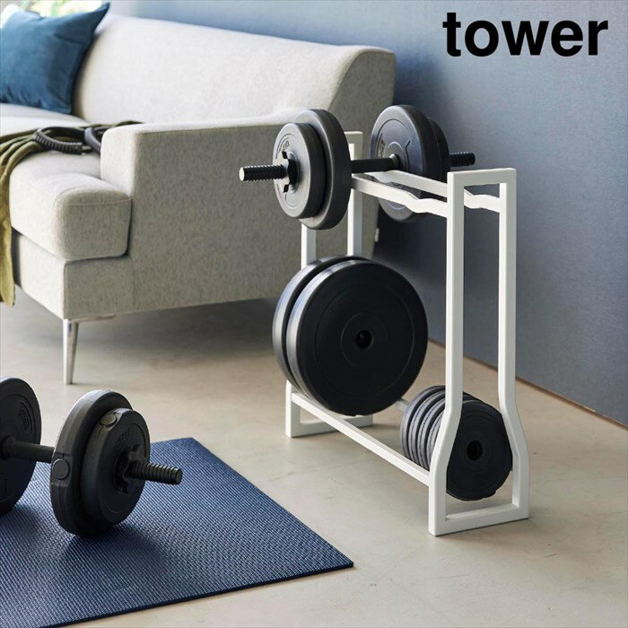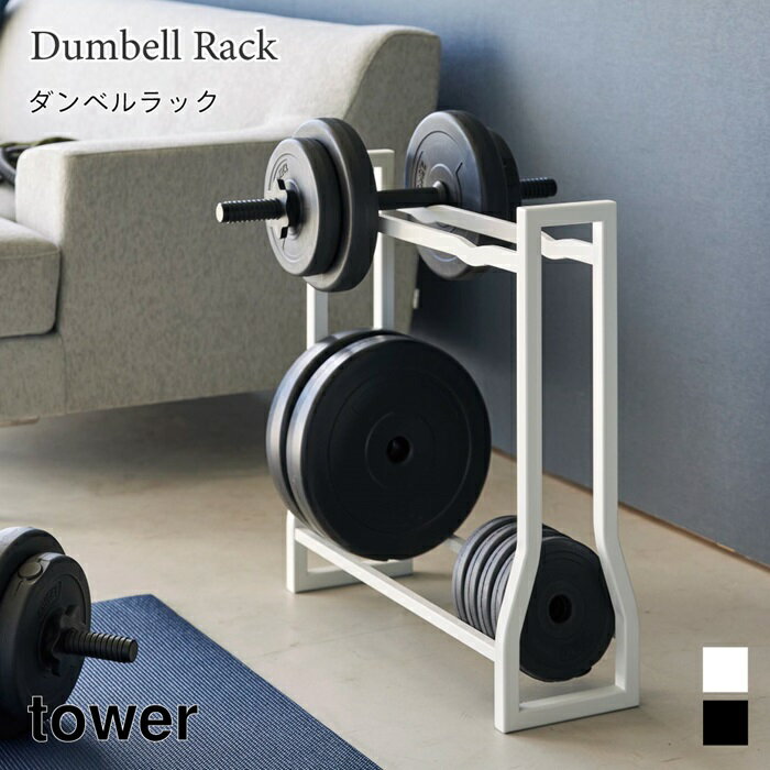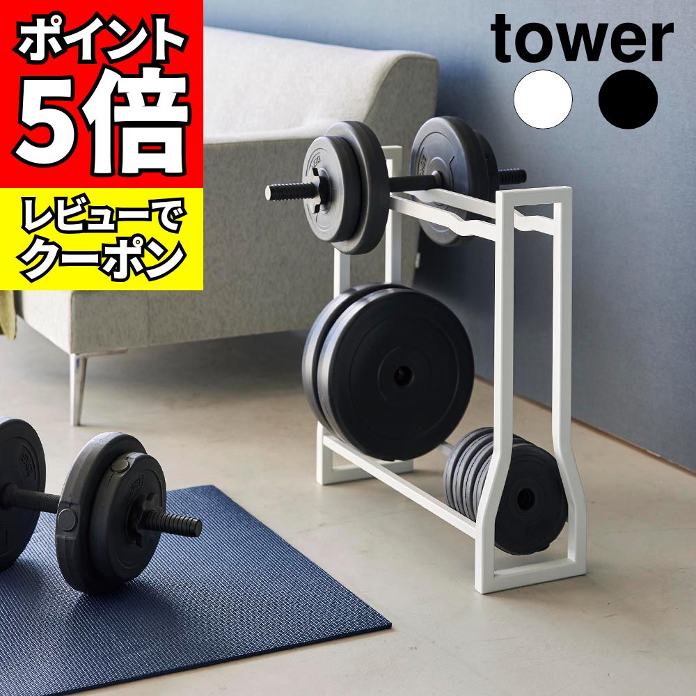 ダンベルラック タワー 山崎実業 tower ホワイト ブラック 1963 1964 ダンベル 可変式 プレート 筋トレ セット スタンド ラック フィットネス 筋トレグッズ トレーニング 用品 収納 おしゃれ 【e暮らしR】【ポイント5倍】