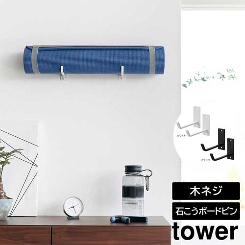 石こうボード壁対応ウォールヨガマットハンガー フック付き タワー 山崎実業 tower ホワイト ブラック 4092 4093 タワーシリーズ yamazaki