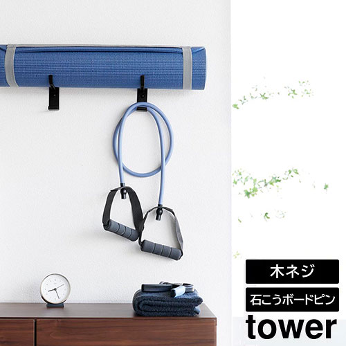 石こうボード壁対応ウォールヨガマットハンガー タワー 山崎実業 tower ホワイト ブラック 4090 4091 タワーシリーズ yamazaki