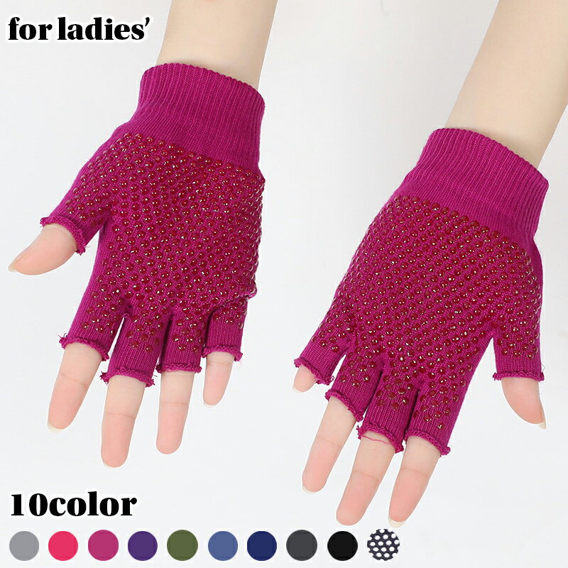 送料無料 ヨガグローブ スポーツ 手袋 滑り止め付き 指なし ハーフフィンガー レディース 女性用 ポーズキープ グリップ感 ストレッチ ピラティス トレーニング 軍手 アウトドア 作業 フィンガーレス スマホ手袋 シンプル 無地 婦人用