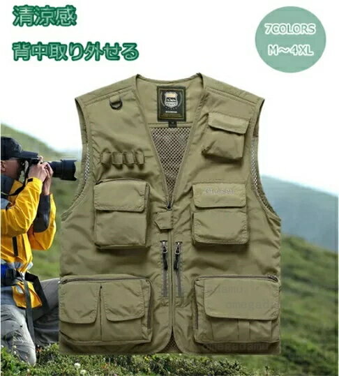 商品説明 ■メイン素材:ポリエステル(系)繊維 ■色展開:7カラーは一番コーデ安い色カーキ、ダークグレー、グリーン、ネイビーと大注目の色オレンジ、イエロー7色を豊富に用意しております。 ※色がある場合、モニターの発色の具合によって実際のものと色が異なる場合があります。 ■対象:男女兼用 ■サイズ展開:M、L、XL、2XL、3XL、4XL ※サイズは平置き計測した実寸表記となっております生地の伸縮、ロット生産等により 1〜3cmの誤差が生じる場合がございます。 ■ウオーキング、登山、撮影、釣り、フィッシング、作業、キャンプ、遠足、旅行などの幅広いなどのシーンで利用することができます。機能性にもしっかりこだわった一枚に仕上げています。ベスト全体はメッシュデザインですので、通気性をもっとアップし、暑い夏でも全然蒸し暑くないです。 ■釣りの大好きな方、カメラマンの方など、大小異なるサイズのポケット沢山ついたが便利! ■多くのポケットデザインが特徴で、このベストがあればバッグは不要といっても過言では程の収納力が魅力です。ポケットが15個付いて、正面は12個で、裏は2個で、バックは1個です。ポケットは立体的な裁断で、収納力抜群のポケットを備え、コンパスや筆記用具といった小物類も整理して収納することができます。 背中部分を収納すると夏用の網ベストに変身!夏の暑い日でも快適に。薄手軽量、メッシュ部は通気性に優れ、アウターにもインナーにも着れてオールシーズン使用可能なフォトベストです。