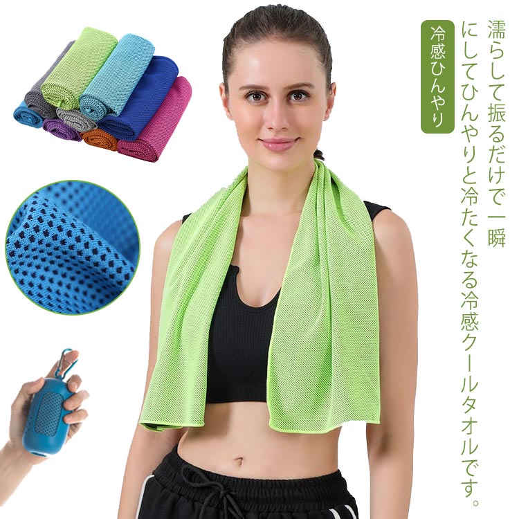 濡らして振るだけで一瞬にしてひんやりと冷たくなる冷感クールタオルです。生地はやわらか肌触りのポリエステルメッシュ生地を採用しており、通気性も吸水性も抜群です通気性も抜群で肌触りに柔らかくて気持ちいい!面料が超薄いため、水に濡らせればすぐにひんやり感たっぷり!汗を吸い上げファイバー内に拡散した水分が気化作用により効果的蒸発します。 何度でも繰り返し使えます。手に付き纏って或いはバッグに掛ければすぐにお出かけできる! コンパクトながら全く邪魔になりません。家でも外でも使える!家事、スポーツやアウトドア活動の時にひんやり気持ちでよく使えます! サイズ30*90cm 30*80cmサイズについての説明サイズ:30*90cm/30*80cm ※サイズは平置き実寸になります。 サイズ表の実寸法は商品によって1-3cm程度の誤差がある場合がございます素材シリコン、ポリエステル色ライトブルー バラ色 パープル オレンジ グリーン ライトグレー ネイビー ピンク ブルー備考 ●サイズ詳細等の測り方はスタッフ間で統一、徹底はしておりますが、実寸は商品によって若干の誤差(1cm〜3cm )がある場合がございますので、予めご了承ください。 ●商品の色は、撮影時の光や、お客様のモニターの色具合などにより、実際の商品と異なる場合がございます。あらかじめ、ご了承ください。●製品によっては、生地の特性上、洗濯時に縮む場合がございますので洗濯時はご注意下さいませ。▼色味の強い製品によっては他の衣類などに色移りする場合もございますので、速やかに(脱水、乾燥等)するようにお願いいたします。 ▼生地によっては摩擦や汗、雨などで濡れた時は、他の製品に移染する恐れがございますので、着用の際はご注意下さい。▼生地の特性上、やや匂いが強く感じられるものもございます。数日のご使用や陰干しなどで気になる匂いはほとんど感じられなくなります。
