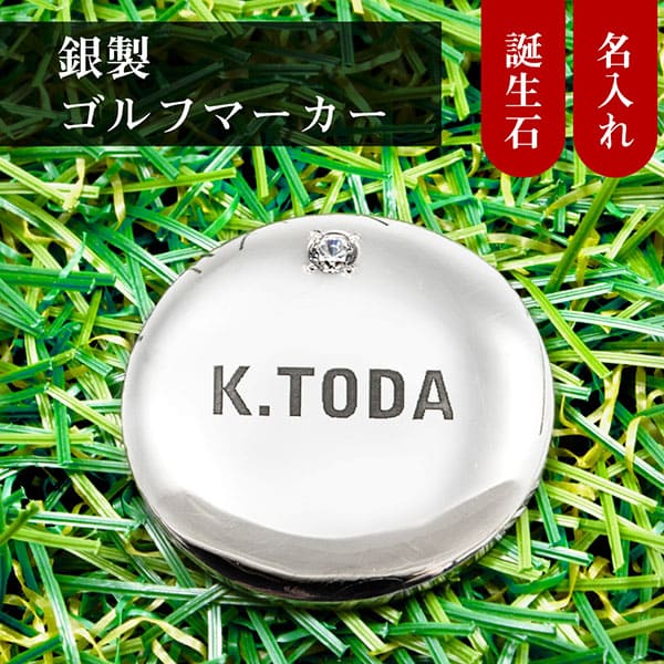 ギフトやコンペに大好評!オリジナルゴルフマーカー!! 完全オリジナルシルバー製の、こだわりボールマーカー。 フチを削りスッキリとしたデザインになっているので、どのクリップやフォークとも相性バツグン! 太陽に映える、美しい鏡面のボールマーカーです。 ゴルフシーンでは欠かせないオシャレアイテムとなっているボールマーカー。 ダグダートではマーカーのセンターにオリジナル刻印を無料でお入れします。 ※お入れする文字数には制限があります。 センターの部分には刻印が入り、大好評の選べる誕生石もセットできるのが嬉しい! 好きな誕生石と刻印を入れオリジナルマーカーとしてご愛用ください! ゴルフの必需品であるボールマーカーに、お父さん・大切な方のお名前やメッセージを最大10文字まで無料刻印いたします!! 自分用としてはもちろん、退職のお祝いや、誕生日、父の日のギフト、贈答品、記念のお品などとしても需要が高いゴルフアイテム☆ 当店通販で人気上位!! マーカーの裏面には磁石がセットされています。※本マーカーと他ブランドのハットクリップやフォーク商品との組み合わせは極性が反発する磁石の可能性があり、セットできない場合もあります。 (※本商品はマーカー単品となります。ハットクリップは付属していません) ★フォークとのセット。 MS-050b / MS-018b / MS-025b ★ハットクリップとのセット。 MS-019b / MS-029b / MS-035b メンズアクセブランドのDAgDART/ダグダートは、男性だけでなく女性にも楽しめるシルバーアクセアリーを1個1個丁寧に創りあげています。 アイテムキーワード #ホールインワン記念 #イーグル記念 #アルバトロス記念 #コンペ #幹事 #賞品 #景品 #記念品 #かっこいい #オシャレ #ゴルフ用品 #還暦祝い #ゴルフ好き #ゴルフ男子 #ゴルフ女子 #人気 #ワンランク上 #実用的 #実用品 #名入れ #刻印 #ネーム #父の日 #退職祝い #ギフト #人気 #オリジナル #dagdartGOLF #ダグダートゴルフ #クリスマス #誕生日 #贈答品 #贈り物 #マーカー #敬老の日 #925 #銀製 #シルバー #ドメスティック #マグネット #キャップ #誕生石 #石 #天然石 #ゴルフマーカー贈答用 #目立つ #高級この商品は【マーカー単品】です。ハットクリップ(台座)等は付属しません。 ダグダートのゴルフマーカーは、シルバーアクセブランドだからこそ出来た、銀の美しさを考えたデザインが魅力のゴルフアイテムです。 貴金属に使われるシルバーを贅沢に使用。 鉄やメッキ加工ではない、ワンランク上の高級マーカーです。 無料の名入れ・刻印でオリジナルアイテム 各ゴルフマーカーの所定の位置に、名入れ・メッセージを刻印できます。 ※10文字まで、英数字のみ刻印可。空白、「.(ピリオド)」は文字数に含みません。 刻印書体サンプル例 ブロック体 筆記体 刻印の文字サイズについて 文字数により多少文字の大きさが異なります。バランスよくお入れいたしますのでお任せください。 刻印位置・入力可能な書体・文字数 ブロック体:10文字まで 筆記体:10文字まで 刻印位置:中央 ※左の刻印例は「ブロック体」です。 刻印内容のご依頼について 刻印商品の注意点 刻印をお入れした商品は返品・交換ができません。ご注意ください。 誕生月・記念月のストーンをセット 無料で誕生月や記念月など、お好きな誕生石をセットできます。誕生石をご指定いただき、セミーオーダーのマーカーとしてお楽しみいただけます。 1月ガーネット 2月アメジスト 3月アクアマリン 4月キュービックジルコニア 5月エメラルド(合成) 6月ブルームーンストーン 7月ルビー(合成) 8月ペリドット 9月サファイア(合成) 10月ピンクトルマリン 11月シトリン 12月ブルーキュービックジルコニア ※石のお色は、写真とは多少異なる場合がございます。 厚み 縦幅 横幅 重量 刻印 約2.4mm 約22.8mm 約22.8mm 約7.3g 可 素材 Silver925 + 誕生石(2.5mm) 注意事項 ※刻印をお入れした商品は交換・返品が出来ません。