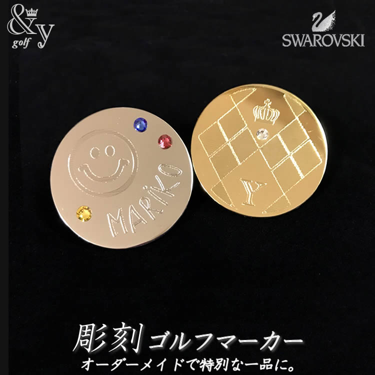ゴルフマーカー【名入れ彫刻】 オーダーメイド イニシャル ゴルフマーカー *&y.アンドユー* スワロフスキー ゴルフ 男性 プレゼント 誕生石 名入れ 記念品 結婚祝い 人気 ギフト メッセージ 彫刻 ゴルフコンペ 景品