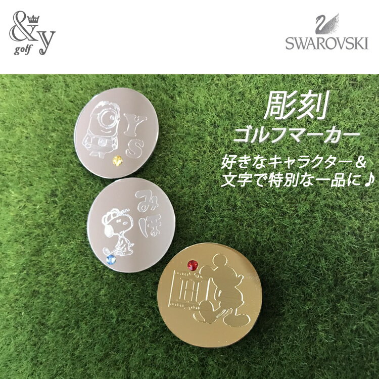 ゴルフマーカー【名入れ彫刻】 キャラクター イニシャル オーダーメイド ゴルフマーカー *&y.アンドユー* スワロフスキー ゴルフ 男性 誕生石 名入れ 記念品 誕生日 結婚祝い 人気 ギフト 彫刻 ゴルフコンペ 景品