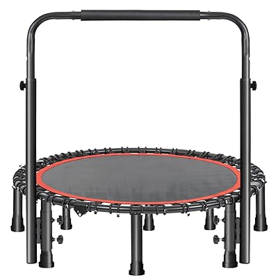 TORIBIO トランポリン 手すり付き 室内 子供大人用 耐荷重200kg 静音 折りたたみ 家庭用 4段階調整可能 (122cm)