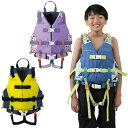 お子様とマリンスポーツや川など水辺アクティビティを楽しむための必須アイテム 肩、腹・腰の3点で調整可能で様々な体型の方にしっかりとフィットし、RAC認定済みで安心安全。 ■カラー: イエロー/ブルー( イエロー×ブルー ) ジオメパープル( ジオメトリー×パープル ) ジオメブルー( ジオメトリー×ブルー ) ■サイズ:目安身長/110~150cm、目安体重/15~40kg、目安胸囲/50~75 cm、浮力/5.6kg ■素材: 表面生地/ポリエステル 下部/水抜け用メッシュ素材 内部素材/ポリエチレン発泡体 ■特徴: 股掛ベルト/着用時に股掛ベルトすることで、水に落ちが際にジャケットから体が抜け落ちないようにします。 調整可能/様々な体形に合わせ、ウエストベルトで調整可能。 レスキューハンドル/緊急時に引き上げることができる、レスキューハンドル 水抜け用メッシュ/本体下部をメッシュ素材にすることで、水抜けをよくし早く乾きます。 RAC認定/NPO法人川に学ぶ体験活用協議会(RAC)によるライフジャケットの基準を満たしている製品です。 浮力テスト/製品全体を水中に沈めた状態で浮力測定をし、5.6kgをクリアしています。 耐久テスト/製品の肩部分、ベルト部分は引張強さ試験(JIS L 1096)をもとに580Nで10分のテストをクリアしています。 検索ワード:ライフベスト 救命胴衣 キッズ