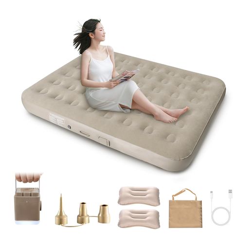 ベッド、来客用、キャンプ、車中泊、引越し、防災、お昼寝 【製品仕様】電動エアーベッドのサイズ:長さ200cm幅150cm高さ40cm耐荷重:300kg材質:良質なフロッキング生地、高品質なPVC材料推奨使用人数:1-2人製品内容:電動エアーベッド*1、電動ポンプ内蔵*1、エア枕*1、3種類のチャージ/エアブリード補助エアノズル(エアマットなどに適用)*1、Type-C充電ケーブル*1、収納袋*1、日本語取扱説明書*1。 【ワンクリックで空気を入れる●電動ポンプを新たにアップグレード】DAIDAIZAI電動エアーベッドには新たにアップグレードされた電動ポンプが内蔵されており、別途高価なエアポンプを購入する必要はありません。空気を入れる/抜く両用、3分でワンタッチで空気を入れる、手間をかけずに自動的に膨張できるので、手動で空気を入れるより便利です。電動ポンプには3種類の異なる口径のエアノズルがついており、取り外した後、単独で空気入り枕、エアマット、その他のエア充填製品に使用することもできる。満充電後に3-5回空気を充填/排気することができ、キャンプ/ピクニック/災害時/停電時でも安心して使用できます。