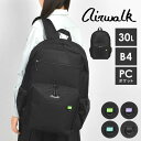 リュック レディース 大容量 リュックサック 30l A4 B4 シンプル 無地 黒 ブラック おしゃれ かわいい ブランド 通学 通勤 女子 女の子 高校生 中学生 大学生 大人 女性 男子 男の子 airwalk エアウォーク PC タブレット 15インチ 収納 内生地 見やすい ポケット 多い 旅行