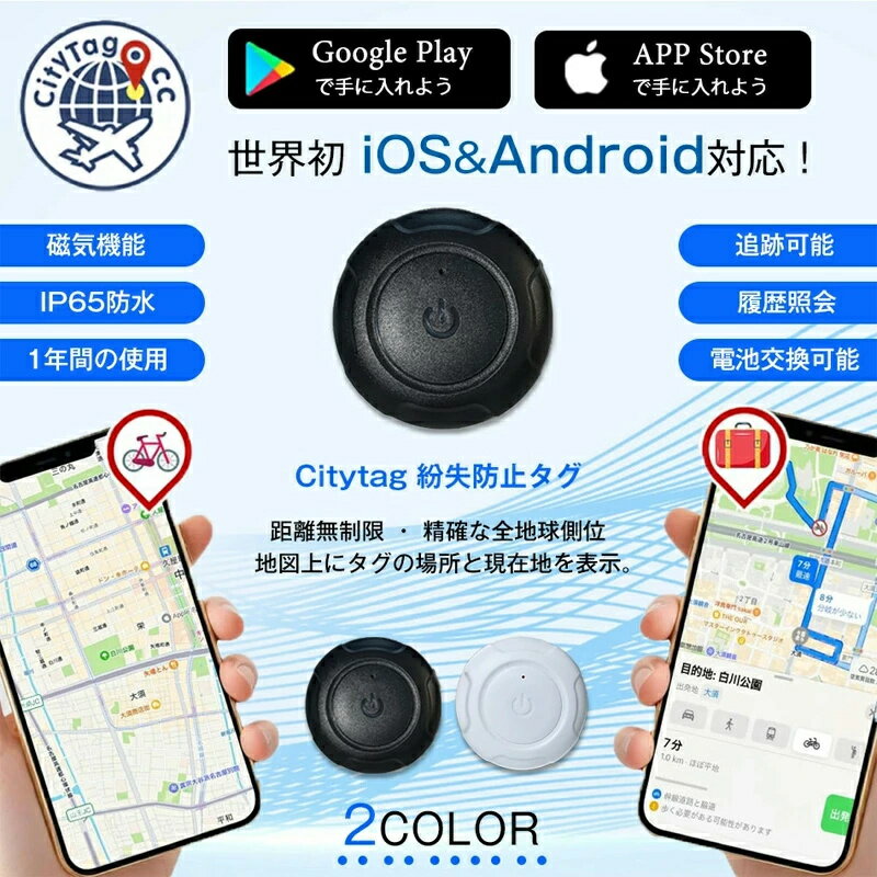 Citytag GPS発信機 Apple&Android共通 1年間使用可能 月額不要 車追跡 磁気機能 老人 gps 子供 gps 浮気調査 gps 小型 gps 紛失防止タグ 履歴照会バイク自転車 gpsトラッカー 迷