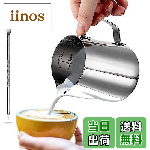 【送料無料】ミルクピッチャー ミルクジャグ ラテアート 18/8ステンレス製 スケール線付き コーヒー ミルクフォーマー 12oz (350ml)
