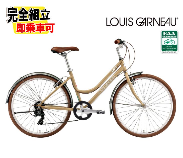 ■このモデルは『ペダル』、『ベル』、『キックスタンド』、『泥除け(フェンダー)』が標準装備されております。 ■【別売オプション】マルチフロントキャリアのページはこちら。 ■【別売オプション】アルミフロントバスケットのページはこちら。 ※バスケット単体では車体に取付できません。 バスケット取付希望の際は上記のフロントキャリアも同時にご注文下さい。 SPEC SIZE(C-T)/適正身長(cm) 370mm(140〜155) 420mm(150〜165) 470mm(160〜175) ※適応身長はあくまでも目安となります。 WIGHT(サイズ) 約12.4kg(420mm) MAIN COMPONENTS SHIMANO TOURNEY (7 SPEED) FRAME MATERIAL 6061 ALUMINUM FRONT FORK HI-TEN HEAD SET 1" STEEL THREADED HANDLE BAR ALLOY RISER(560mm) STEM ALLOY QUILLSTEM ANGLE 30DEGREE EXT (40/370mm, 60/420mm, 80/470mm) CRANK SET (LENGTH) ALLOY 42T (170mm) B/B (B/B WIDTH) STEEL 116mm(68mm) PEDAL ALLOY FRONT DERAILLEUR NIL REAR DERAILLEUR SHIMANO RD-TY300 TOURNEY SHIFTER SHIMANO SL-RV400 BRAKE SHIMANO BR-T4000 BRAKE LEVER TEKTRO ALLOY FREE WHEEL SHIMANO CS-HG200-7 12-28T 7SPD CHAIN KMC 110LINKS SADDLE LG COMFORT SEAT POST ALLOY 27.2mm(300mm) HUB F&R:ALLOY NUT 36H SPOKE STAINLESS RIMS ALEX DC19 36H TIRE KENDA K193 26"X1.5" E/V OTHER ベル, 前後フェンダー,サイドスタンド, LEDライト ※掲載画像はイメージです。実物とカラーイメージが若干異なったり、構成パーツ等が異なる場合がございます。 ※構成パーツやデザインなどの仕様については予告なく変更される場合がございます。 予めご了承いただきます様お願い致します。LOUIS GARNEAU CITYROAM8.0 BAA 楽に乗り降りできるコンフォートクロスバイク トップチューブを下にさげたクラシカルなフレームデザインを採用し、スカートでの乗り降りもしやすく、おしゃれに街中で乗車できるバイクです。 日常使いに便利なキックスタンドやフェンダーはもちろん標準で装備。 様々なタイプのキャリアやバスケットがオプションで用意されているので、あらゆるコーディネートで自分だけの1台をお楽しみ頂けます。