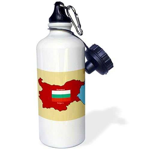 3dRose "The map and flag of Bulgaria with Bulgaria printed in English and Bulgarian." Sports Water Bottle, 21 oz, White