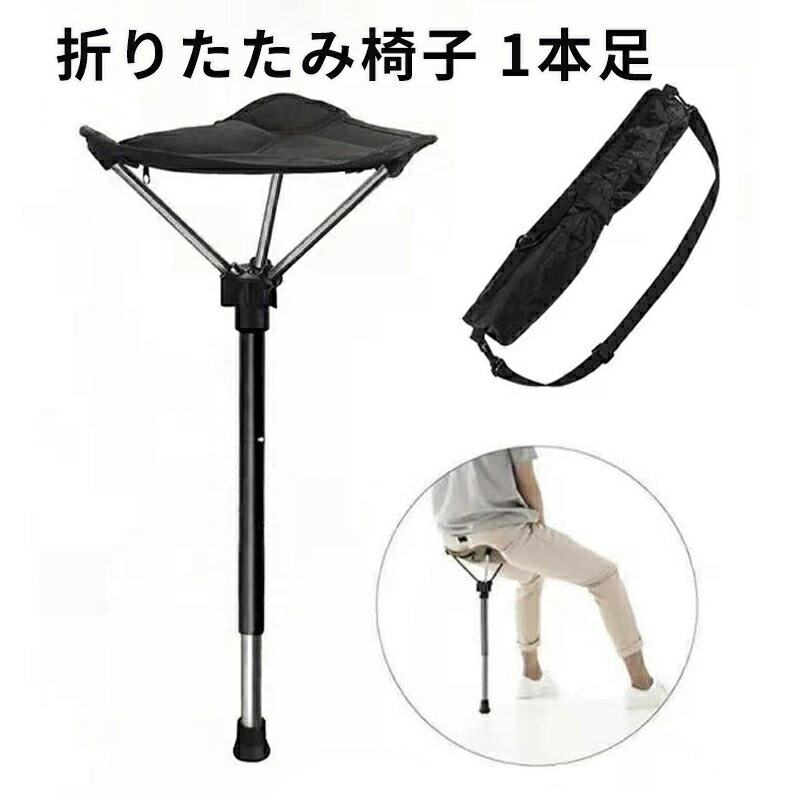 アウトドアチェア ポータブル折りたたみ椅子立ったまま 座れる椅子 ステッキチェア モバイルチェア キャンプチェア 片足アウトドアチェア 伸縮式アウトドアチェア 4段階の高さ調節 超軽量 収納バッグ付き 持ち運び簡単 待ち行列/駅/コンサート