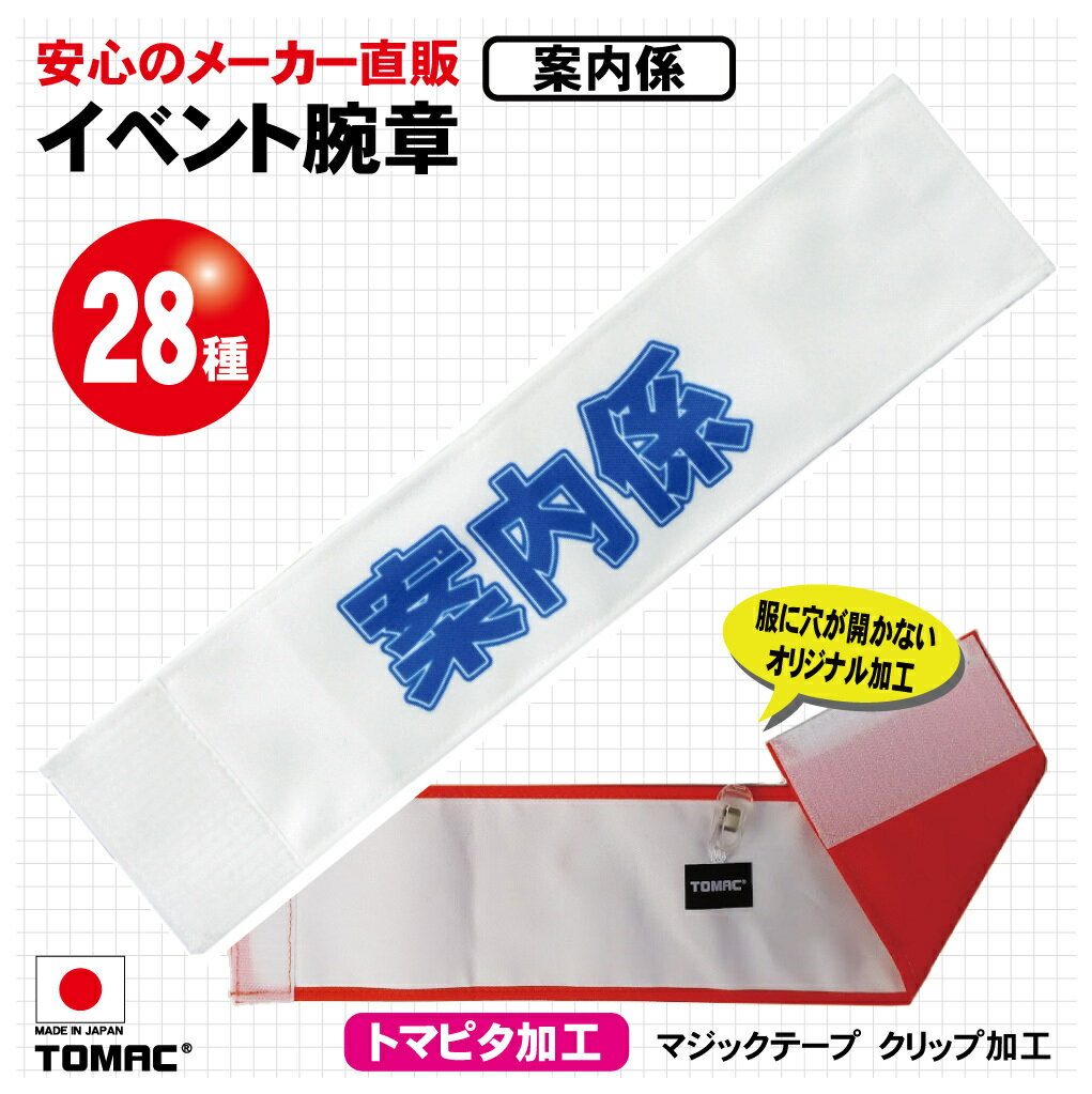 装着しやすい!マジックテープ加工、クリップ留め服を傷めないTOMAC/トマック WA-E29 イベント腕章 案内係 試験会場 イベント会場 コンサート会場 スポーツイベント 学校 小道具 PTA 町内会