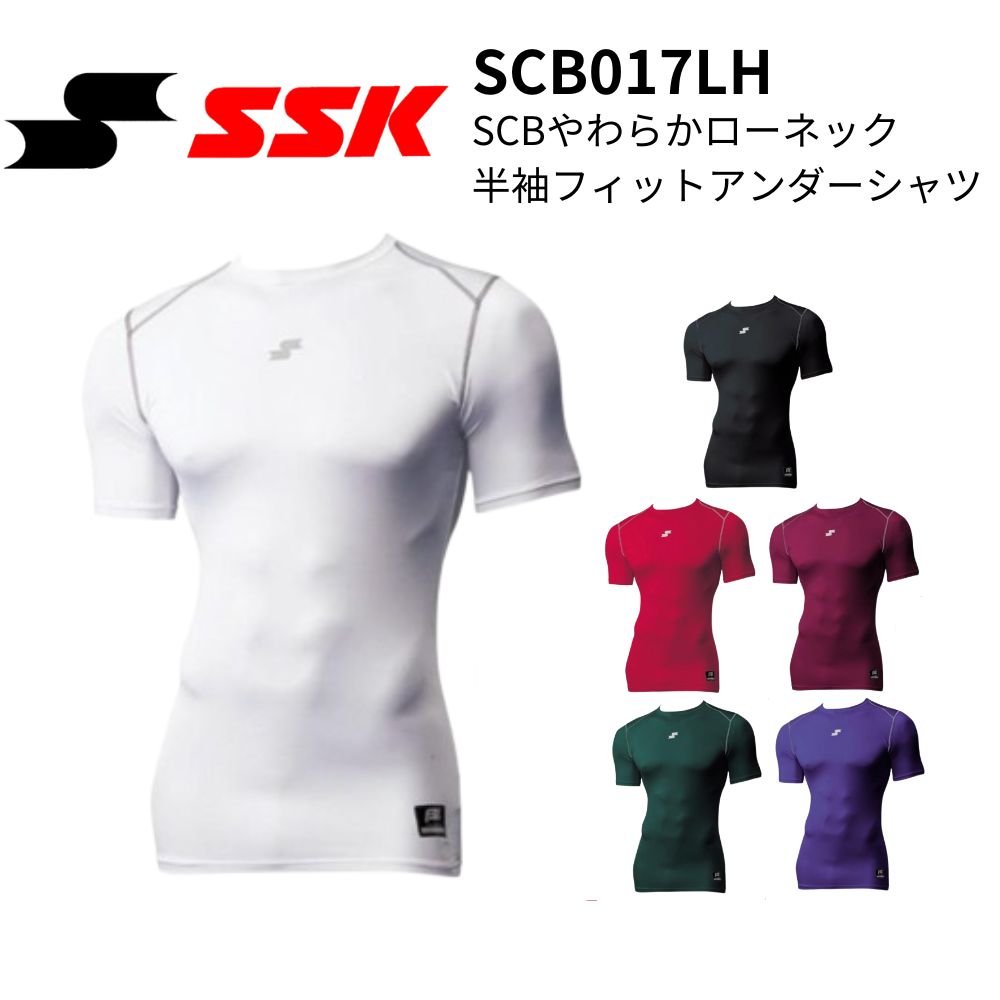 SSK エスエスケイ SCBやわらか ローネック半袖 フィットアンダーシャツ クルーネック 丸首 吸汗速乾 伸縮性 フィット感 ホワイト エンジ レッド パープル Dグリーン ブラック S M O XO