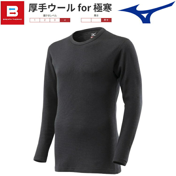MIZUNO ミズノ ブレスサーモアンダーウエア 厚手ウール for 極寒 クルーネック長袖シャツ 2023年モデル メンズ C2JAA601