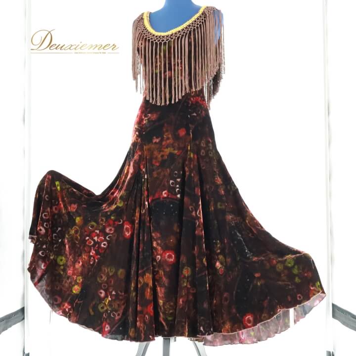 【中古】CANELA PURA フラメンコ 衣装 ワンピース ドレス ベロア フレコ フリンジ 赤 黒 高級感 上品 ブラック系 レッド系 発表会 パーティ デザイン おしゃれ 女性用 イベント 舞台衣装 ステージ フェスティバル ドレスアップ C043-2511022000759