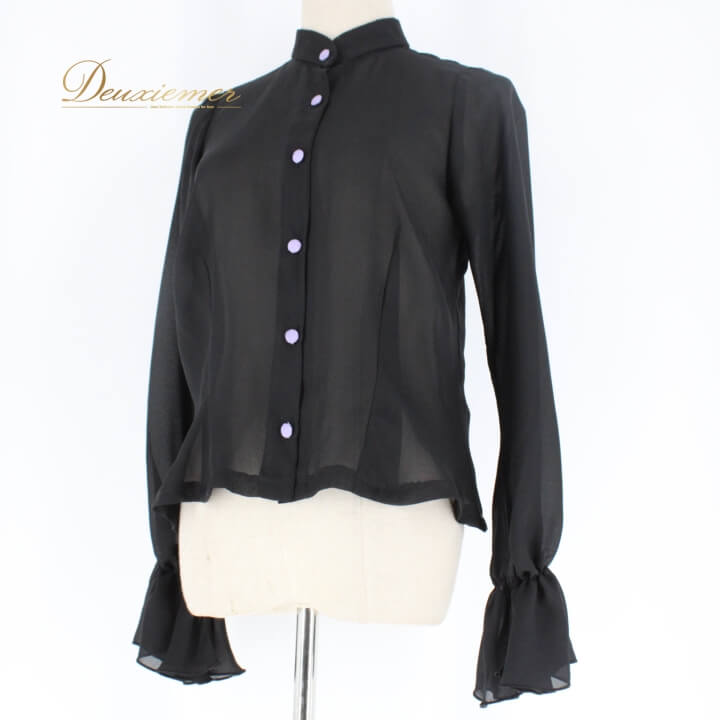 【中古】CANELA PURA フラメンコ 衣装 ブラウス トップス 発表会衣装 黒 紫 長袖 薄い 軽い ブラック系 舞台 ダンス パーティ 発表会 フェスティバル コスチューム おしゃれ シンプル レディースファッション 演出 透け感 エレガント デザイン スタイリッシュ