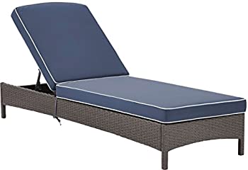 【中古】【輸入品・未使用】Crosley Furniture Palm Harbor Outdoor Wicker Chaise Lounge with Navy Cushions - Grey 141[並行輸入]
