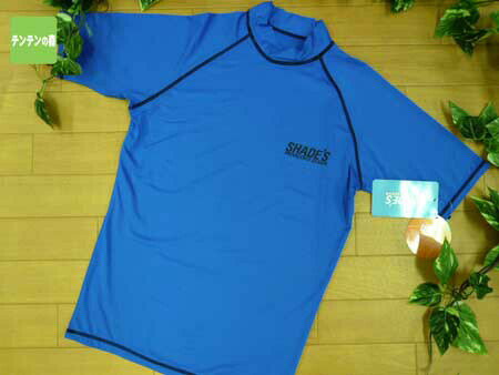 ラッシュガード メンズ LL 水着 SHADE'S シェイズ 男性 スイムウェア UVカット ハイネック 半袖 ロゴ 青 ブルー LL寸