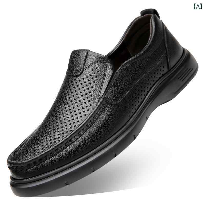 黒色 シューズ メンズ Yierkang メンズシューズ 通気性 革 カジュアル レザーシューズ メンズ サマー レザーサンダル パパ ホール シューズ