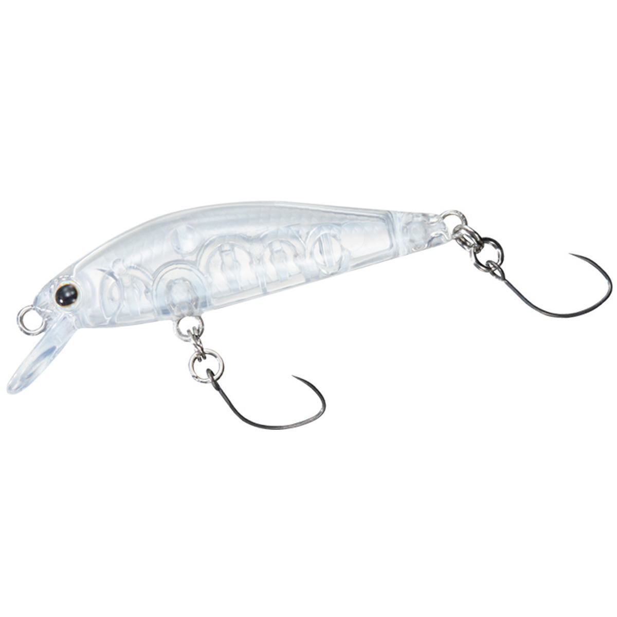 ストリームタイプの管理釣り場攻略の切り札!Dr.MINNOW II エリアチューンが特に力を発揮するのはストリームタイプの管理釣り場である。流れの中を安定して泳ぎ、バランスを崩すことなく、最後まで引いてくることが出来る。また、ポンド型の管理釣り場においても、リールを巻くとワイドで肉厚のリップが水を大きく掴み、ワイドウォブルアクションし、足元までしっかりと魚を狙うことが出来る。●カラー:クリア●全長(mm):42●自重(g):1.9●フック仕様:プレッソ ショートマルチSS #10