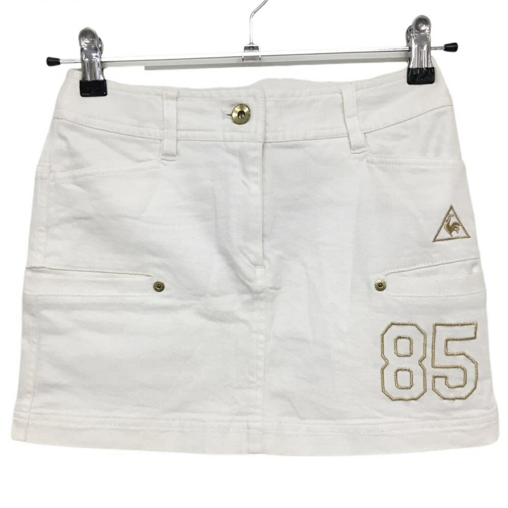 ルコック×DURAS スカート 白×ゴールド 複数ポケット ストレッチ レディース S ゴルフウェア le coq sportif
